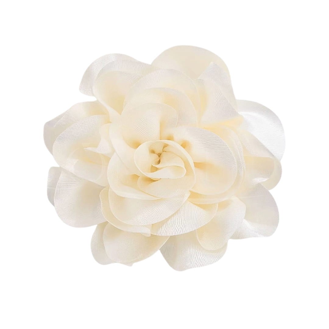 Masywna i efektowna materiałowa śmietankowa broszka w formie rozłożystego kwiatka to stylowy dodatek do garniturów, swetrów i płaszczy. Dzięki takiemu dodatkowi odmienisz swoją stylizację w minutę dodając jej pazura.