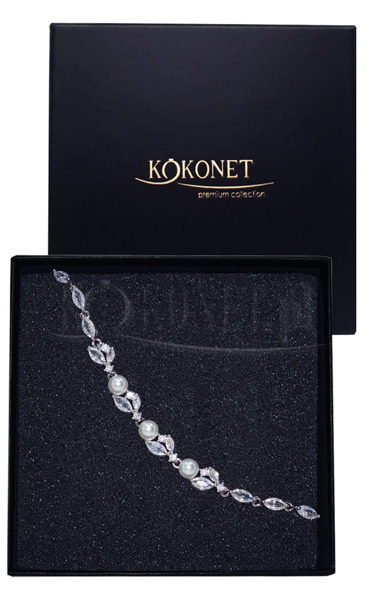 Na całej długości bransoletka wysadzana cyrkoniami i perełkami