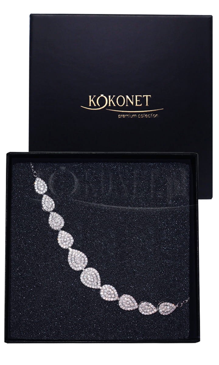 Srebrna bransoletka ślubna z łezkami to jeden z najczęstszych wyborów dokonywanych przez przyszłe Panny Młode. Łezki są klasyczne, a dzięki swojej uniwersalności stanowią uzupełnienie zarówno do rustykalnych sukien w stylu boho, jak i gładkich, prostych sukien ślubnych.
