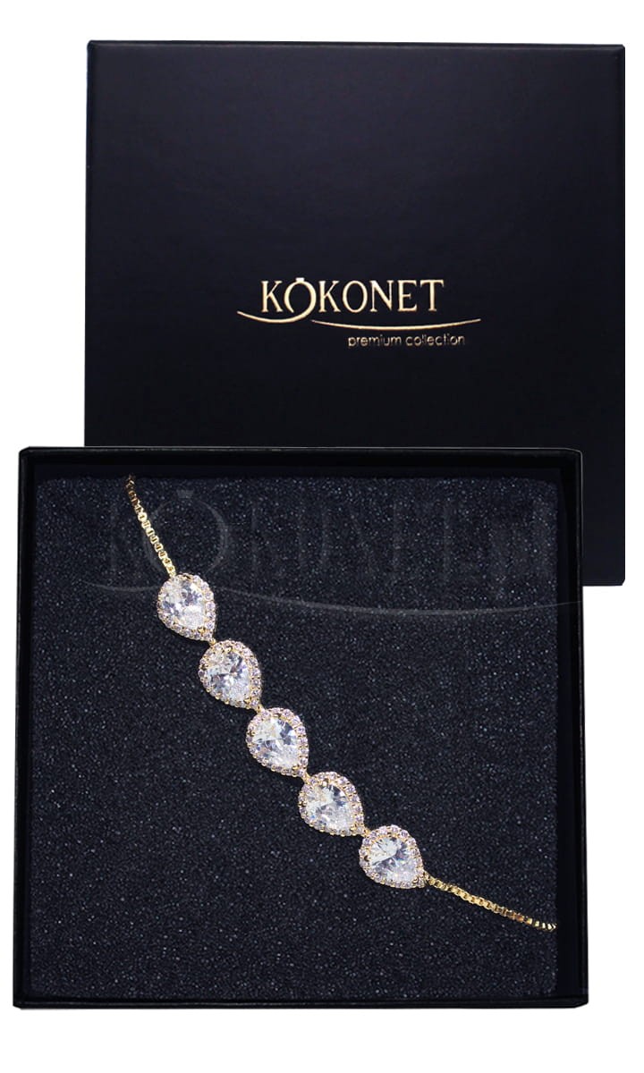 Subtelna i idealnie dopasowująca się do nadgarstka złota bransoletka DROP to rozwiązanie dla każdej z Pań, które cenią sobie minimalizm. Kamienie szlifowane w kształcie kropli stanowią uniwersalny motyw przewodni. Jest najchętniej wybierana do ślubnych stylizacji.
