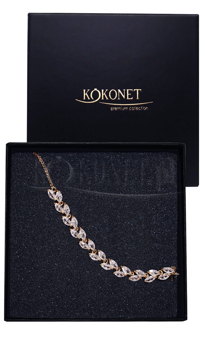 Pozłacana bransoletka ślubna ROSANA jest najchętniej wybieranym wzorem w całej Naszej ofercie - dzieje się tak za sprawą bardzo uniwersalnego kształtu lisków zastosowanych w tym wzorze. Bransoletka jest regulowana, dzięki czemu możesz łatwo dopasować idealną długość dla siebie . Wybierana jest głównie do stylizacji delikatnych i naturalnych, gdzie należy tylko dopełnić look.