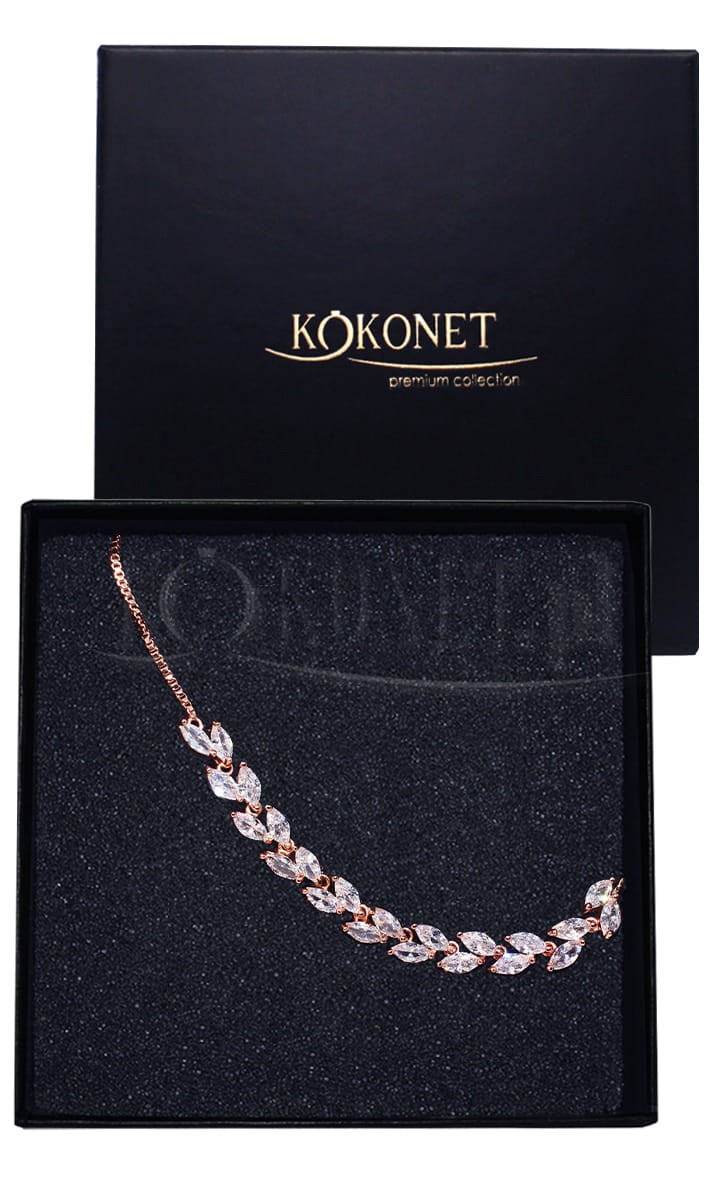 Bransoletka ślubna ROSANA w kolorze różowego złota jest najchętniej wybieranym wzorem w całej Naszej ofercie - dzieje się tak za sprawą bardzo uniwersalnego kształtu lisków zastosowanych w tym modelu. Bransoletka jest regulowana, dzięki czemu możesz łatwo dopasować idealną długość dla siebie . Wybierana jest głównie do stylizacji delikatnych i naturalnych, gdzie należy tylko dopełnić look.