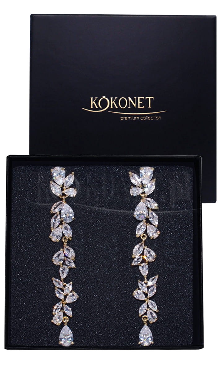 Jedne z najdłuższych kolczyków ślubnych w Naszej ofercie. Dość okazałe i długie złote kolczyki ślubne, które elegancko błyszczą podkreślając urodę. Blanca to zdecydowanie kolczyki dla miłośniczek ozdobnej biżuterii na ślub.