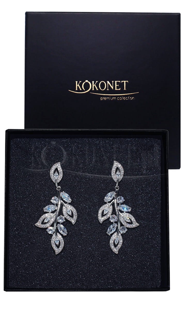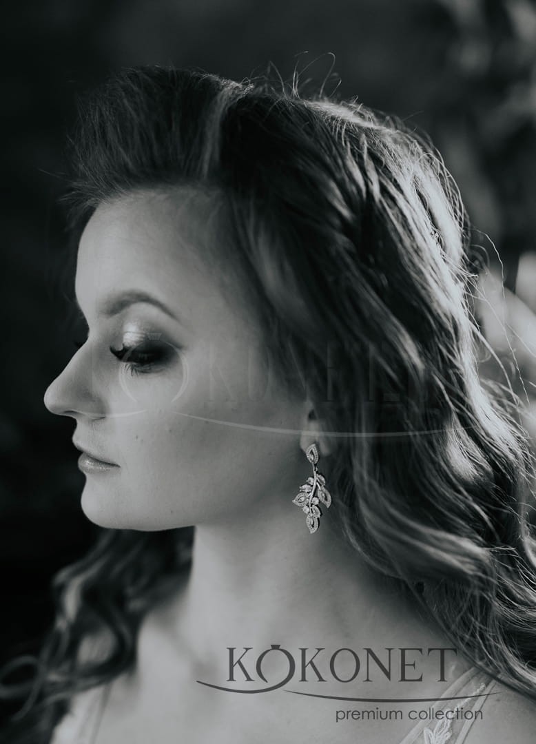 W poszukiwaniu dodatków do stylizacji rustykalnych często Panny Młode szukają ciekawej biżuterii srebrnej z motywem roślinnym - Model ELIZE spełnia te oczekiwania. Wiszące kolczyki w kształcie listków są jednocześnie widoczne, ale na tyle delikatne że nie przeciążą subtelnej boho stylizacji. Możesz założyć je zarówno do rozpuszczonych fal, jak i do romantycznego upięcia.