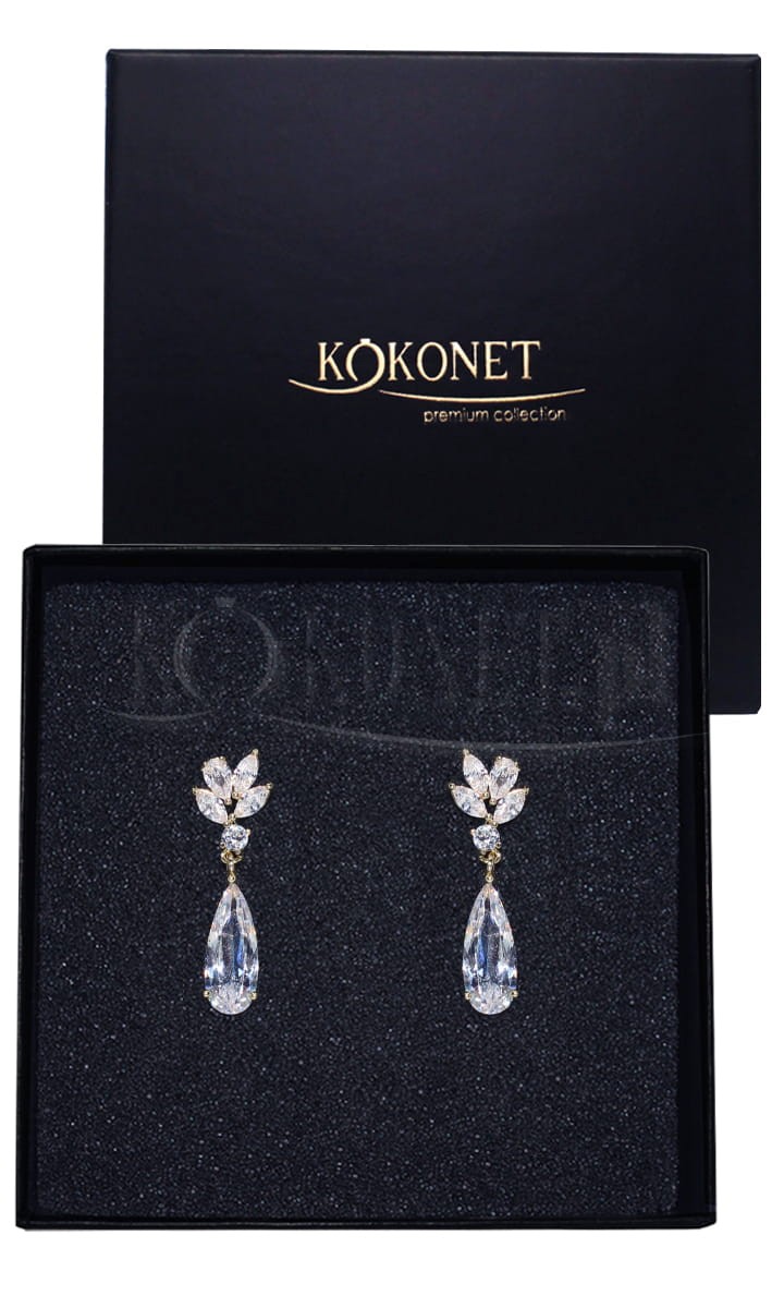 Kolczyki ślubne ILIA stanowią klasyczne połączenie wszechobecnych w ślubnych trendach kształtów migdała z drobnymi listkami. To niezawodne zestawienie daje w efekcie piękny wysmuklający wzór, które docenia wiele Panien Młodych szukających dodatków subtelnych, ale widocznych. Wyważona wielkość oraz niebywała lekkość to przepis na perfekcyjne ślubne akcesoria.