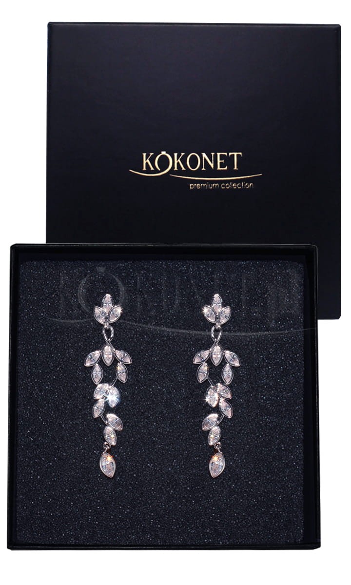 Projektując srebrne kolczyki ślubne NABLA z listkami z cyrkonii chcieliśmy osiągnąć maksymalnie elegancki i równocześnie rustykalny design kolczyków, które będą mogły zostać założone zarówno do gładkich sukni ślubnych w stylu imperial, jak i do klasycznych koronek.