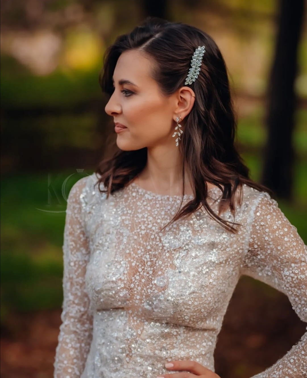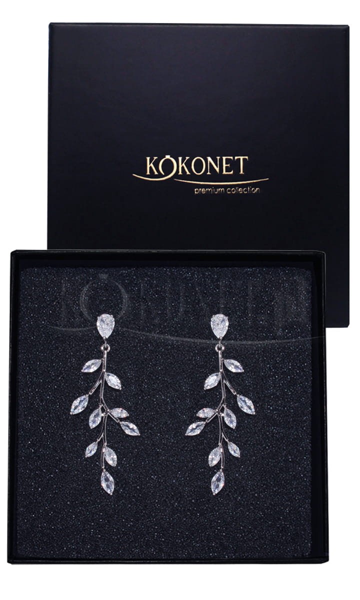 Długie ślubne kolczyki PEDRIA w kolorze srebrnym to uosobienie natury - wzorowane na gałązkę z niewielkimi listkami z cyrkonii pięknie prezentuje się na uchu. Kolczyki są niezwykle lekkie i delikatne, a dzięki zastosowaniu cyrkonii osadzanych ręcznie nie poczujesz ich na uchu. Z powodzeniem znajdą zastosowanie w stylizacjach rustykalnych i romantycznych boho.