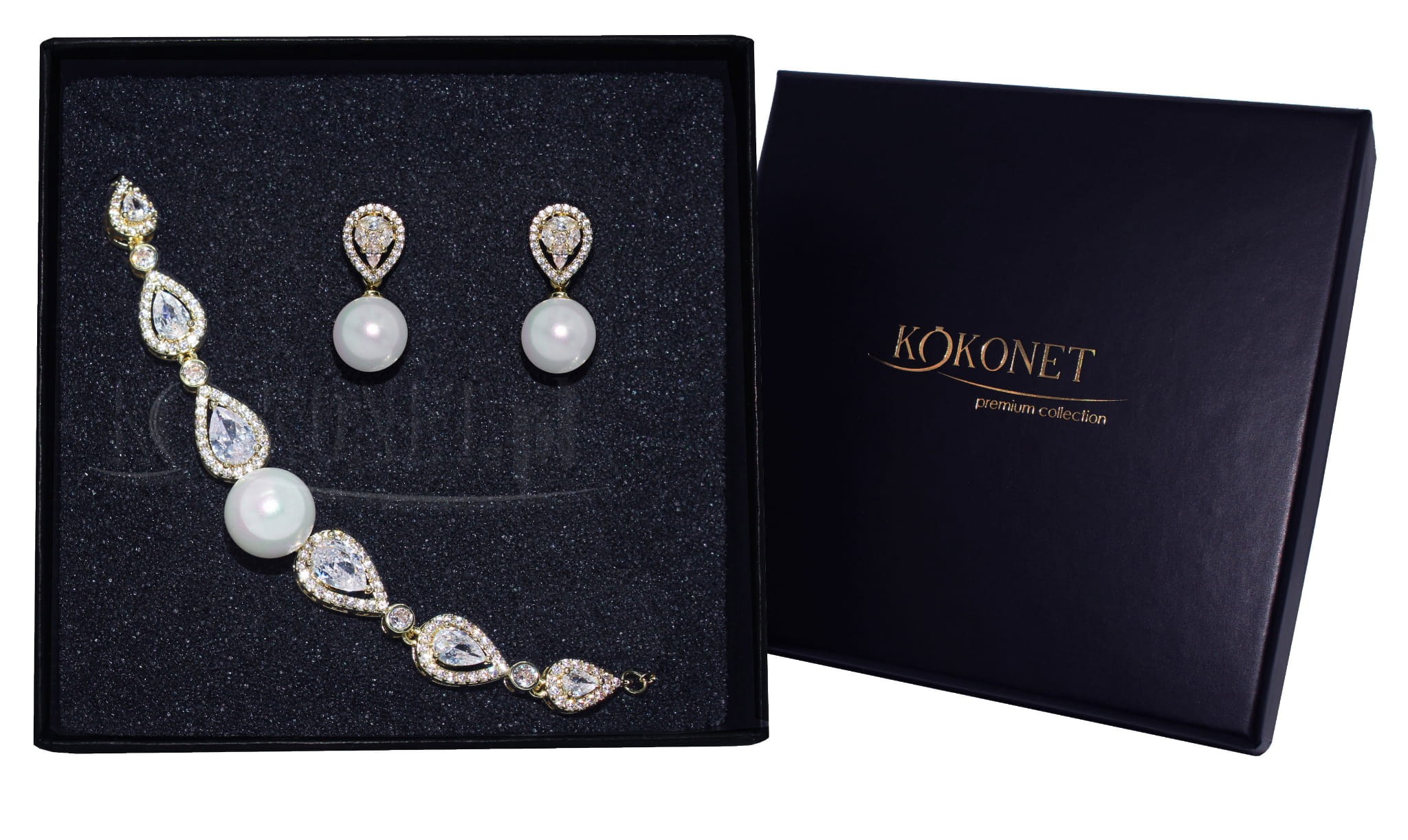 Kolczyki i bransoletka - Komplet ślubny CLASSY gold