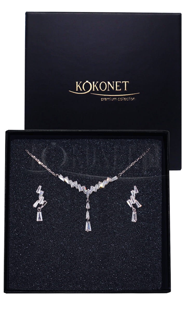 Kolczyki i naszyjnik - Komplet ślubny LUMINA silver