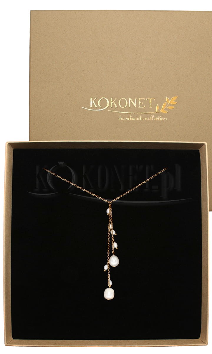 Ręcznie robiony złoty naszyjnik z perłami naturalnymi ALLULA gold to połączenie nowoczesności z ponadczasowym charakterem i elegancją pereł. Delikatny łańcuszek ze stali nierdzewnej w połączeniu z malutkimi perełkami naturalnymi oraz jedną większą na końcu tworzy estetyczną całość elegancko zdobiąc głębokie dekolty czy gładkie zabudowane suknie ślubne.