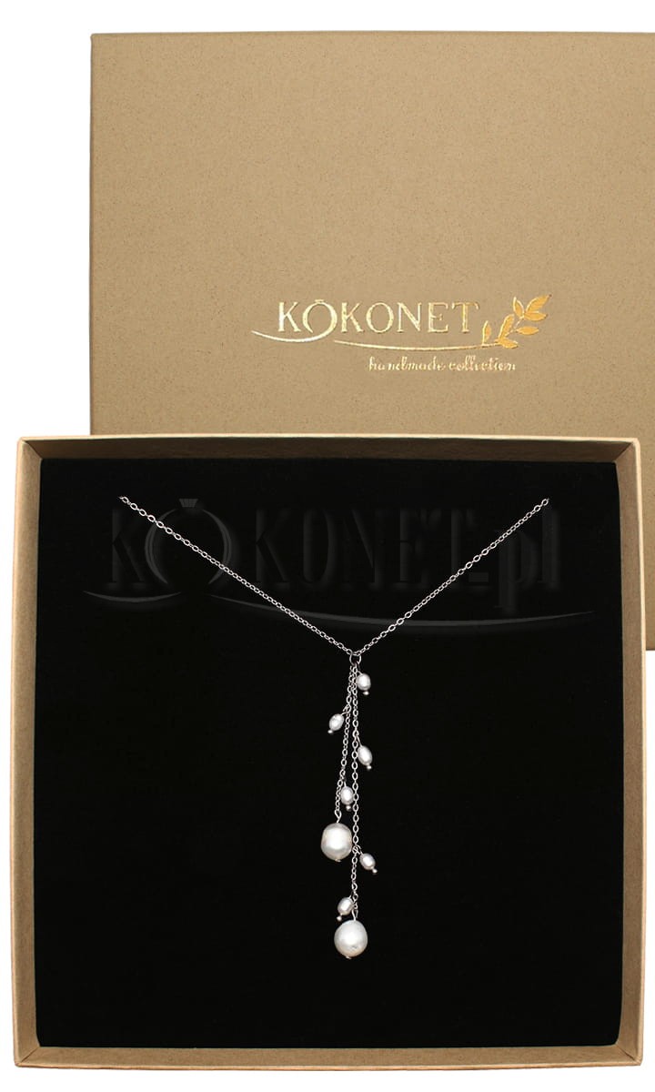 Ręcznie robiony srebrny naszyjnik z perłami naturalnymi ALLULA gold to połączenie nowoczesności z ponadczasowym charakterem i elegancją pereł. Delikatny łańcuszek ze stali nierdzewnej w połączeniu z malutkimi perełkami naturalnymi oraz jedną większą na końcu tworzy estetyczną całość elegancko zdobiąc głębokie dekolty czy gładkie zabudowane suknie ślubne.