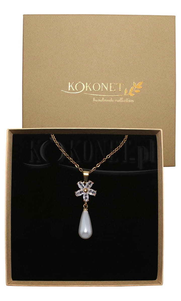 Złoty naszyjnik ślubny z perłami, kwiatami i cyrkoniami FLOR gold