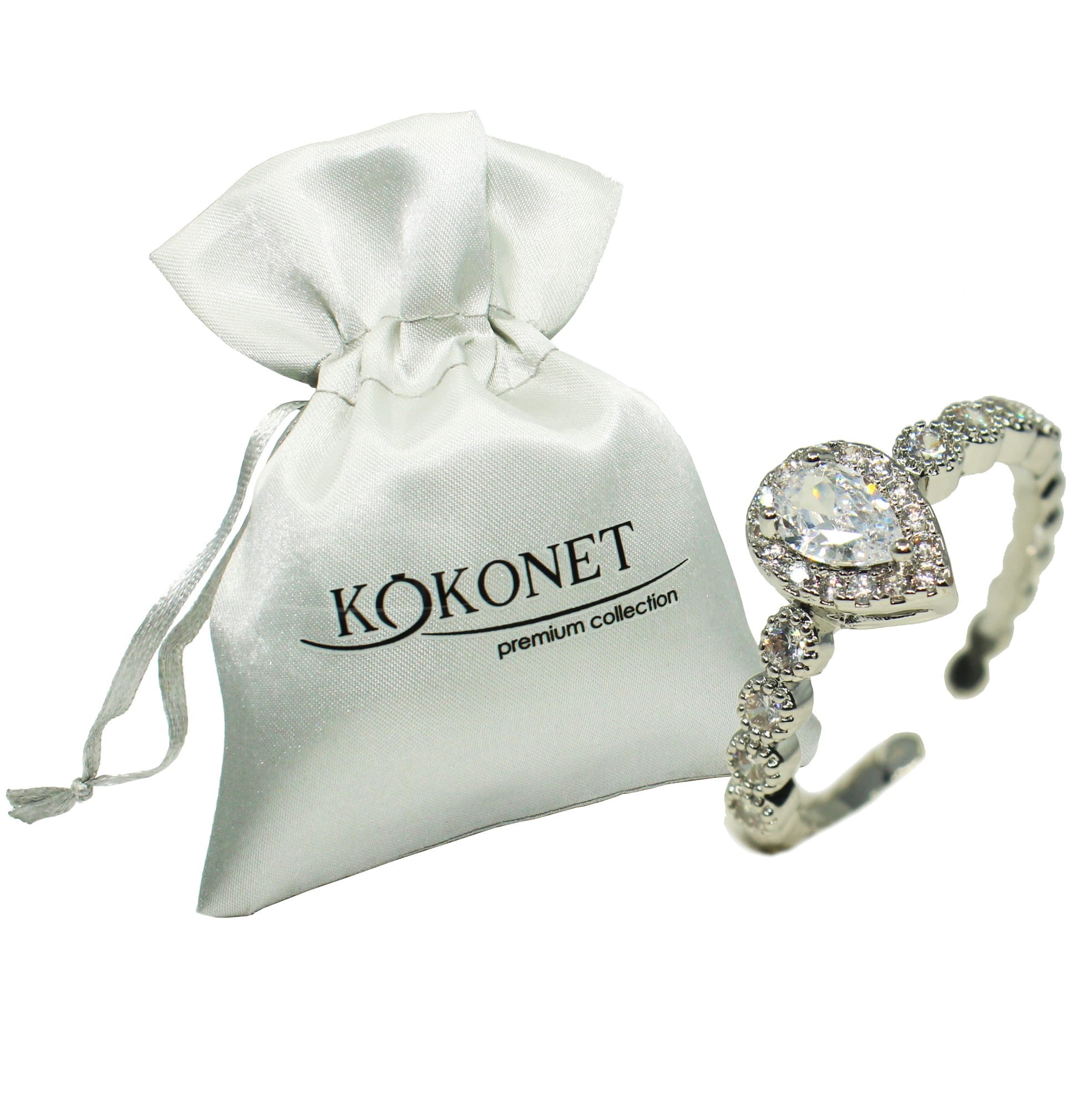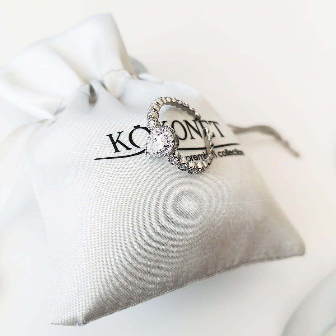Pierścionki jak i obrączki wykonane są z mosiądzu pokrytego kilkukrotnie rodem lub pozłacane, dzięki czemu na długo zachowują swój blask i trwałość. Wysoką estetykę zapewniają pięknie błyszczące cyrkonie szlifowane sześciennie stanowiące substytut najlepszej klasy diamentów. Logo KOKONET gwarantuje wysoką jakość!