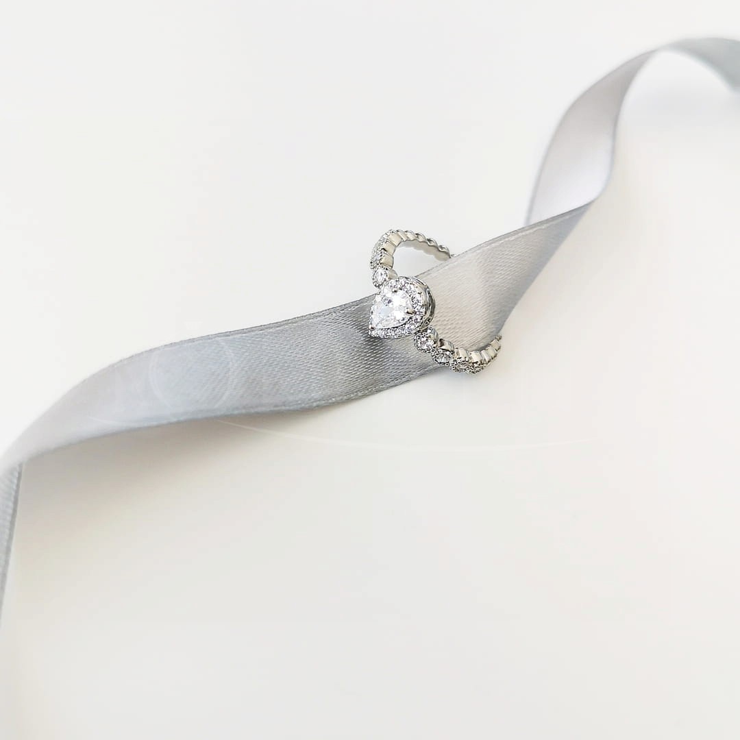 O takim Pierścionku marzy każda wielbicielka uroczych i błyszczących dodatków. Obrączka pierścionka jest wysadzana maleńkimi cyrkoniami, analogicznie jak w głównym kamieniu tworząc misterną, romantyczną kompozycję.