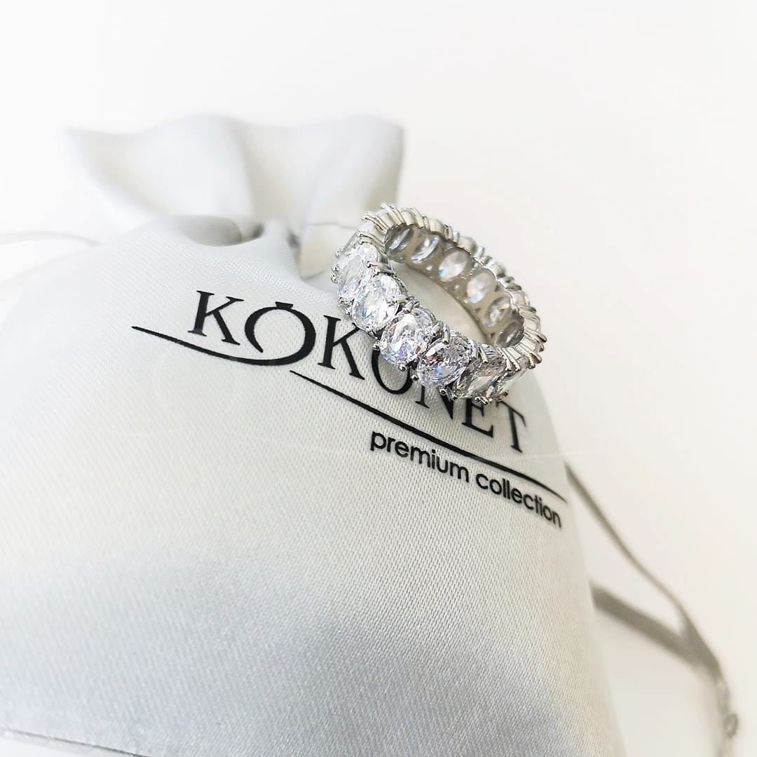 Pierścionki jak i obrączki wykonane są z mosiądzu pokrytego kilkukrotnie rodem lub pozłacane, dzięki czemu na długo zachowują swój blask i trwałość. Wysoką estetykę zapewniają pięknie błyszczące cyrkonie szlifowane sześciennie stanowiące substytut najlepszej klasy diamentów. Logo KOKONET gwarantuje wysoką jakość!