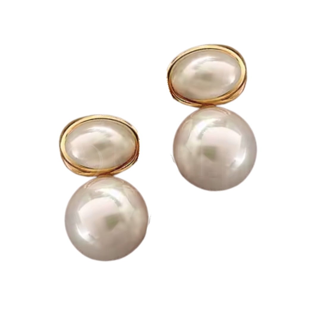 Kolczyki sztyfty z podwójnymi perłami w złotej oprawie wyglądają bardzo elegancko i stylowo.