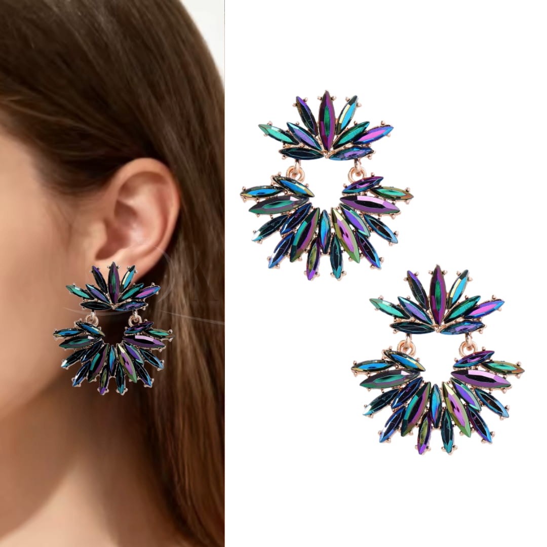Efektowne kolczyki na sztyft z wiszącymi mieniącymi się rozetami podkreślą eleganckie i niecodzienne stylizacje. Wybierz je jeśli jesteś miłośniczką oryginalnej biżuterii.