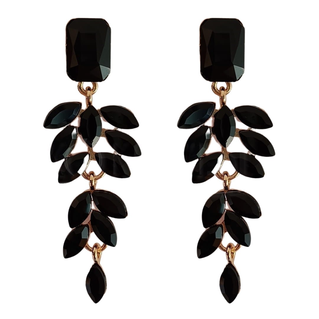 Kolczyki czarne złote wieczorowe z listkami