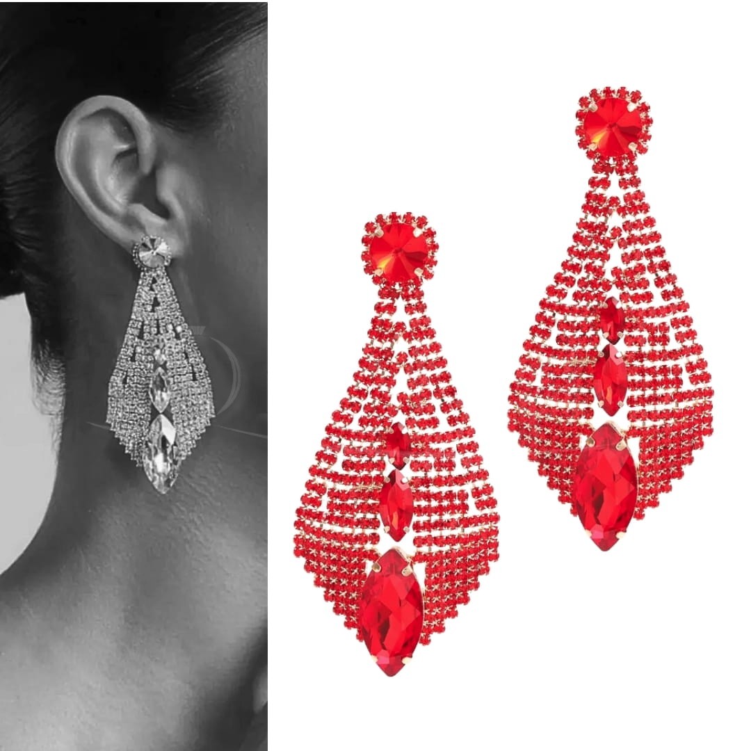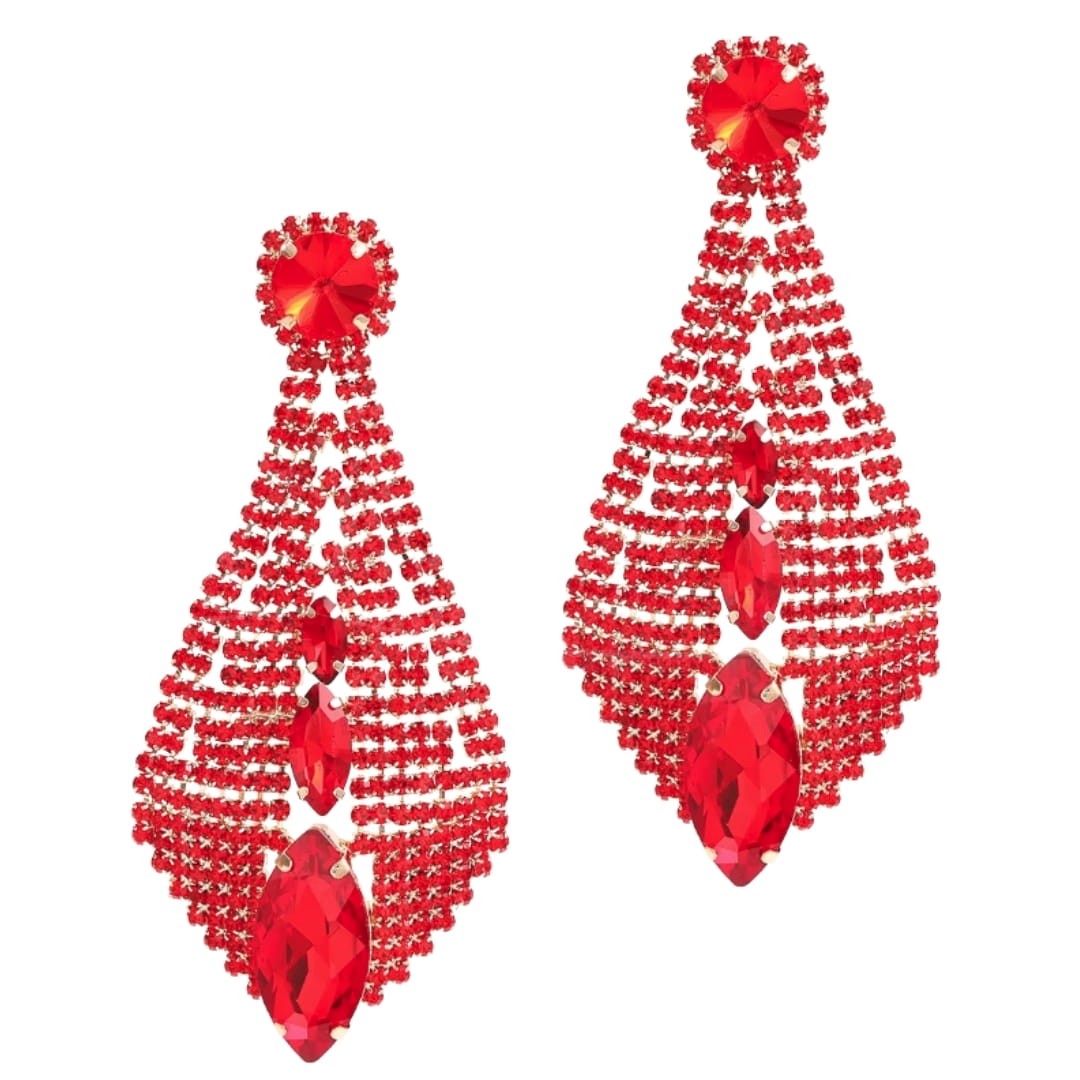 Kolczyki czerwone efektowne chandelier z drobnymi cyrkoniami