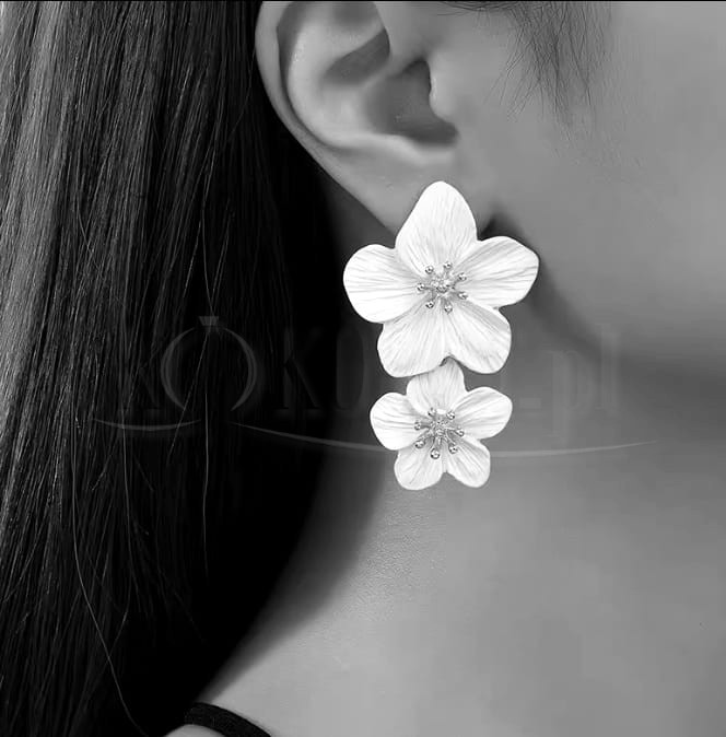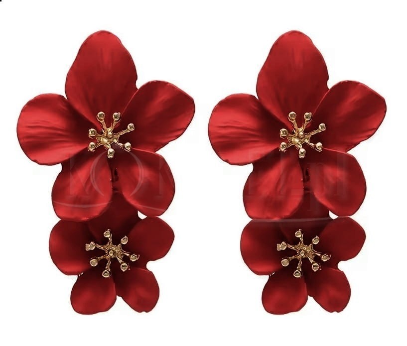 Czerwone lekkie kolczyki z podwójnymi kwiatami wybiorą miłośniczki lekkich i stylowej biżuterii. Kolczyki podkreślą romantyczność stylizacji.