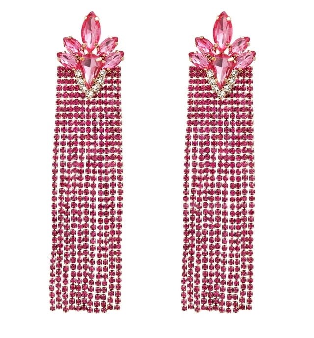 Kolczyki różowe złote nitki z cyrkoniami 2w1
