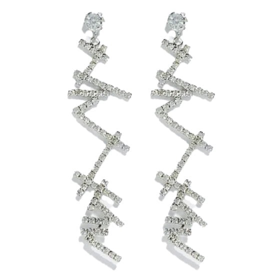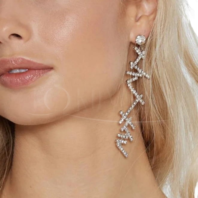 Długie, srebrne kolczyki połamane z cyrkoniami stanowią biżuterię nietypową, z pewnością inną niż spotykane na ulicach.
