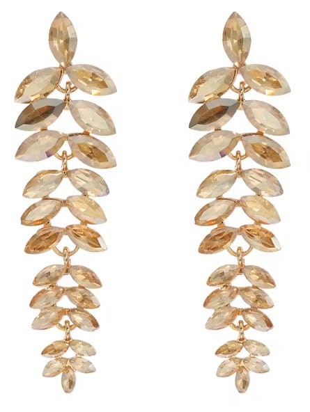 Te efektowne złote długie, wiszące kolczyki z listkami dodadzą charakteru każdej sukni jaką założysz na wesele znajomych, czy eleganckie przyjęcie. Długa forma i kształt listków nie tylko błyszczy i przyciąga uwagę, ale dodaje pewności siebie tworząc nonszalancką stylizację z nutką glamour.