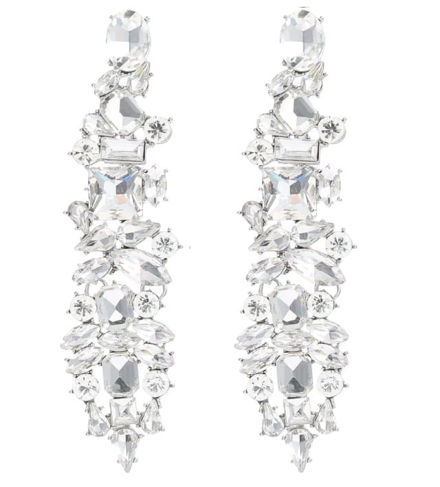 Te eleganckie, długie wizytowe kryształowe kolczyki z cyrkoniami zachwycają subtelnym blaskiem, idealnie komponując się z wieczorową stylizacją. Z powodzeniem wybierz je na sesję do efektownego makijażu, lub wieczorową imprezę.