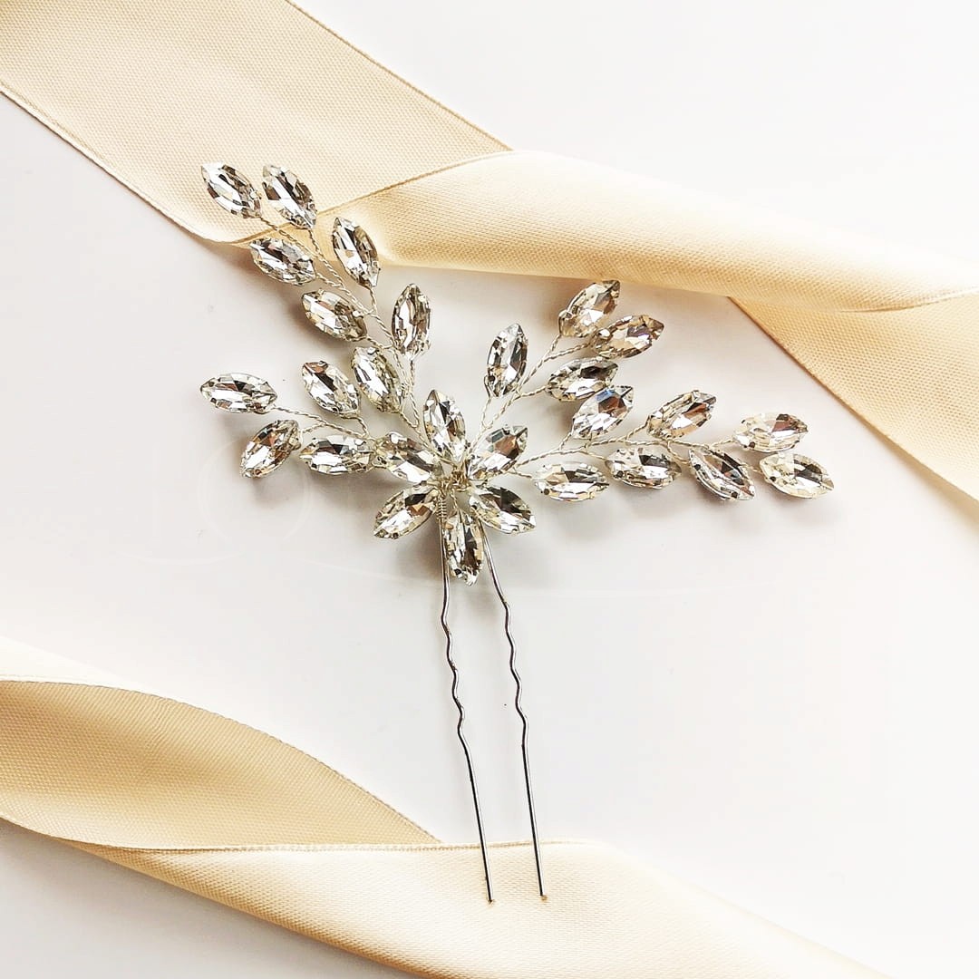 Jeśli szukasz błyszczącej ozdoby ślubnej do swojego uczesania to ta kokówka będzie idealnym wyborem. Dzięki temu, że ozdobna część składa się z cyrkonii ozdoba pięknie błyszczy, a giętki drucik z którego splecione są poszczególne gałązki ułożysz w sposób jaki tylko chcesz.