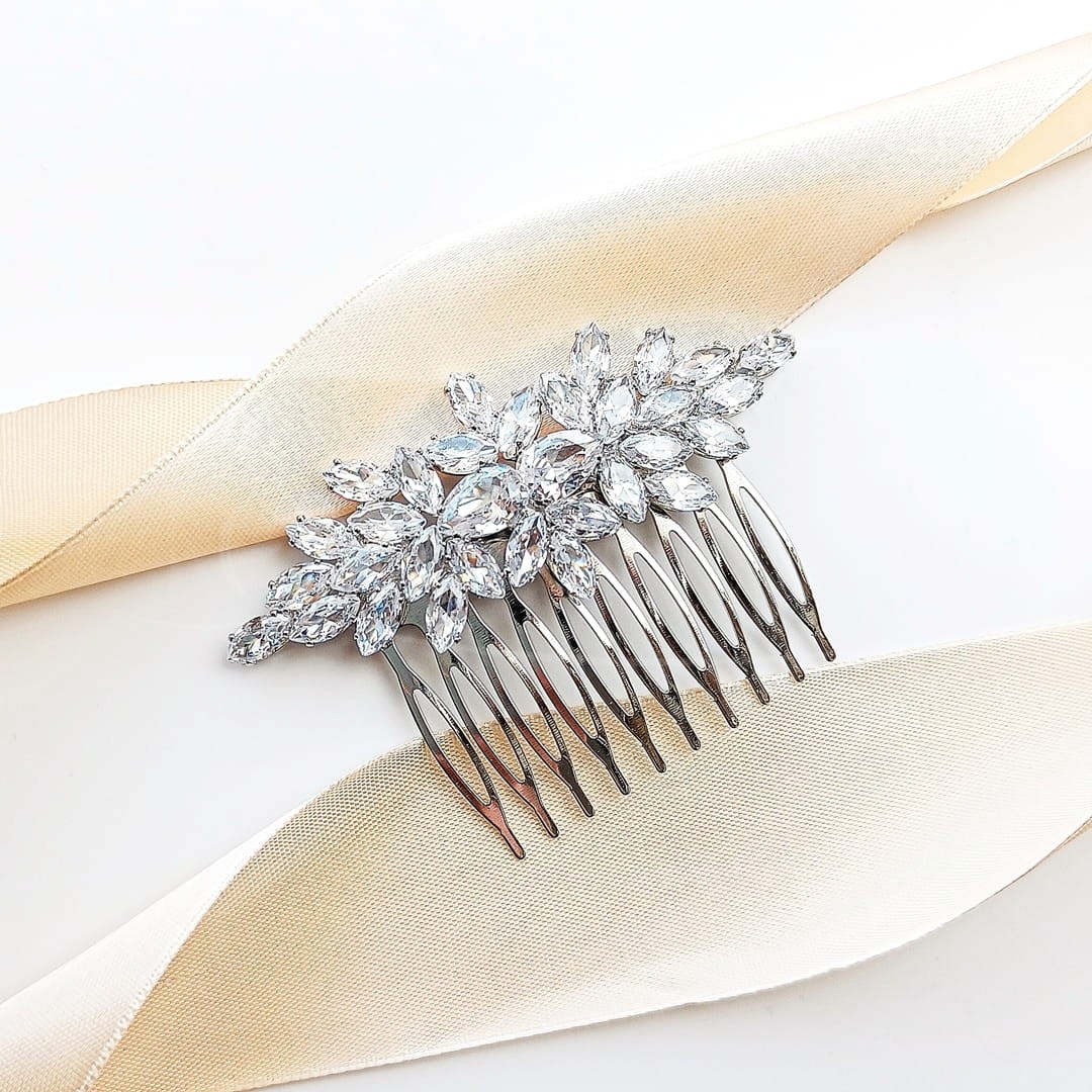 Elegancki srebrny grzebyk ślubny do włosów