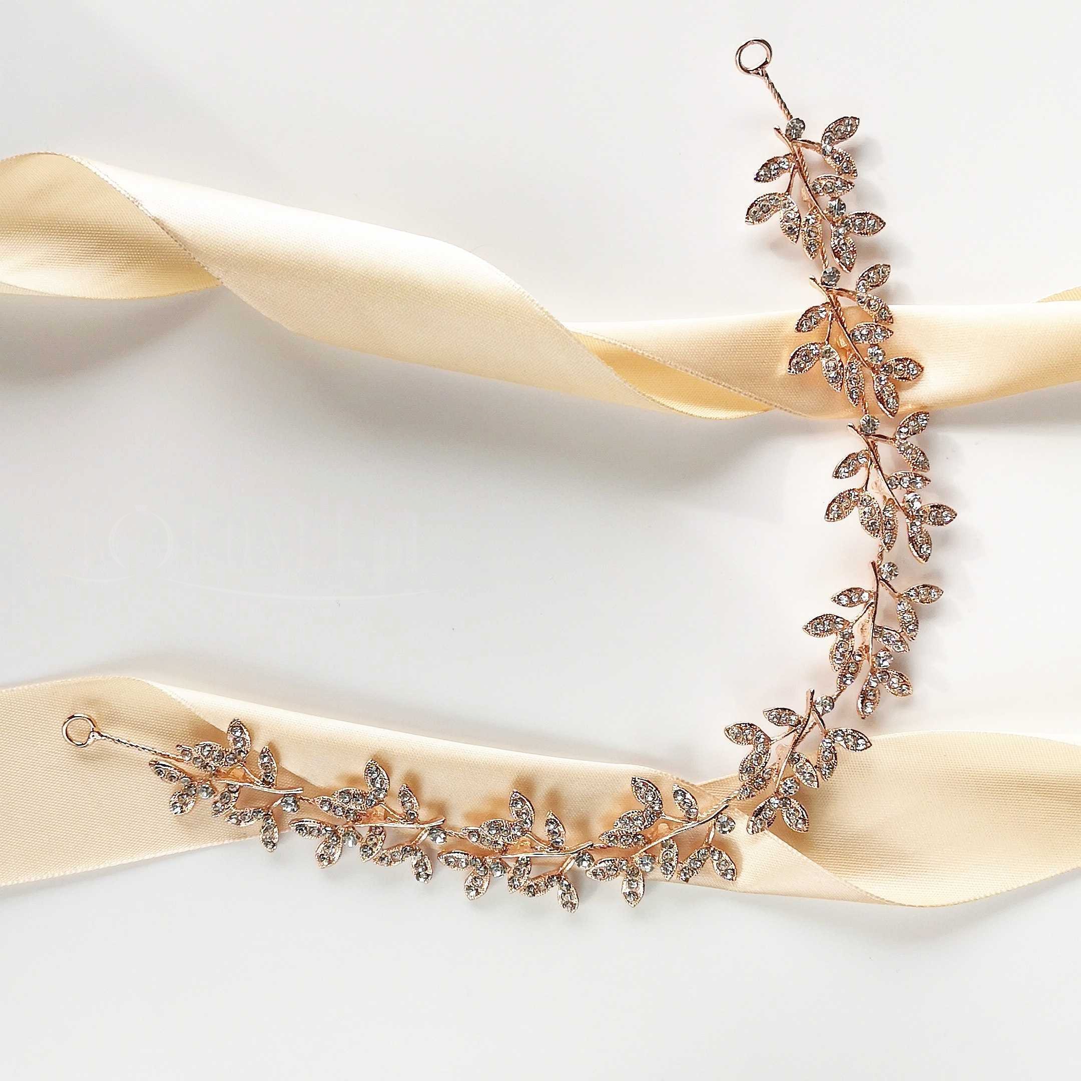 Opaska ślubna w formie gałązki dzięki elastycznemu drucikowi dopasuje się do każdej fryzury pięknie ją ozdabiając - możesz założyć ją jako opaskę, a także opleść ją dookoła kucyka tworząc misterną ślubną kompozycję.