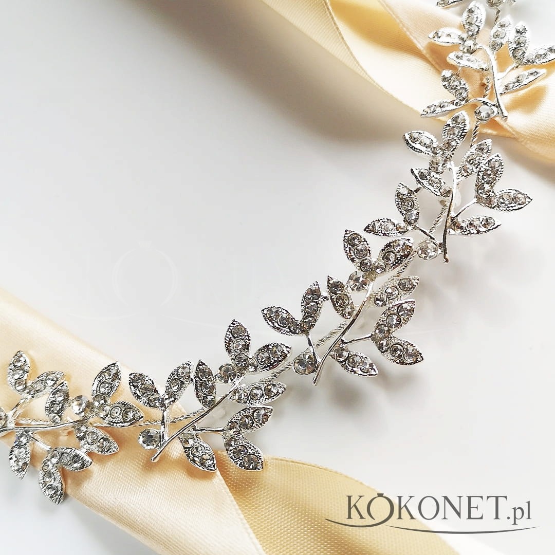 Gałązka opaska srebrna z listkami i cyrkoniami