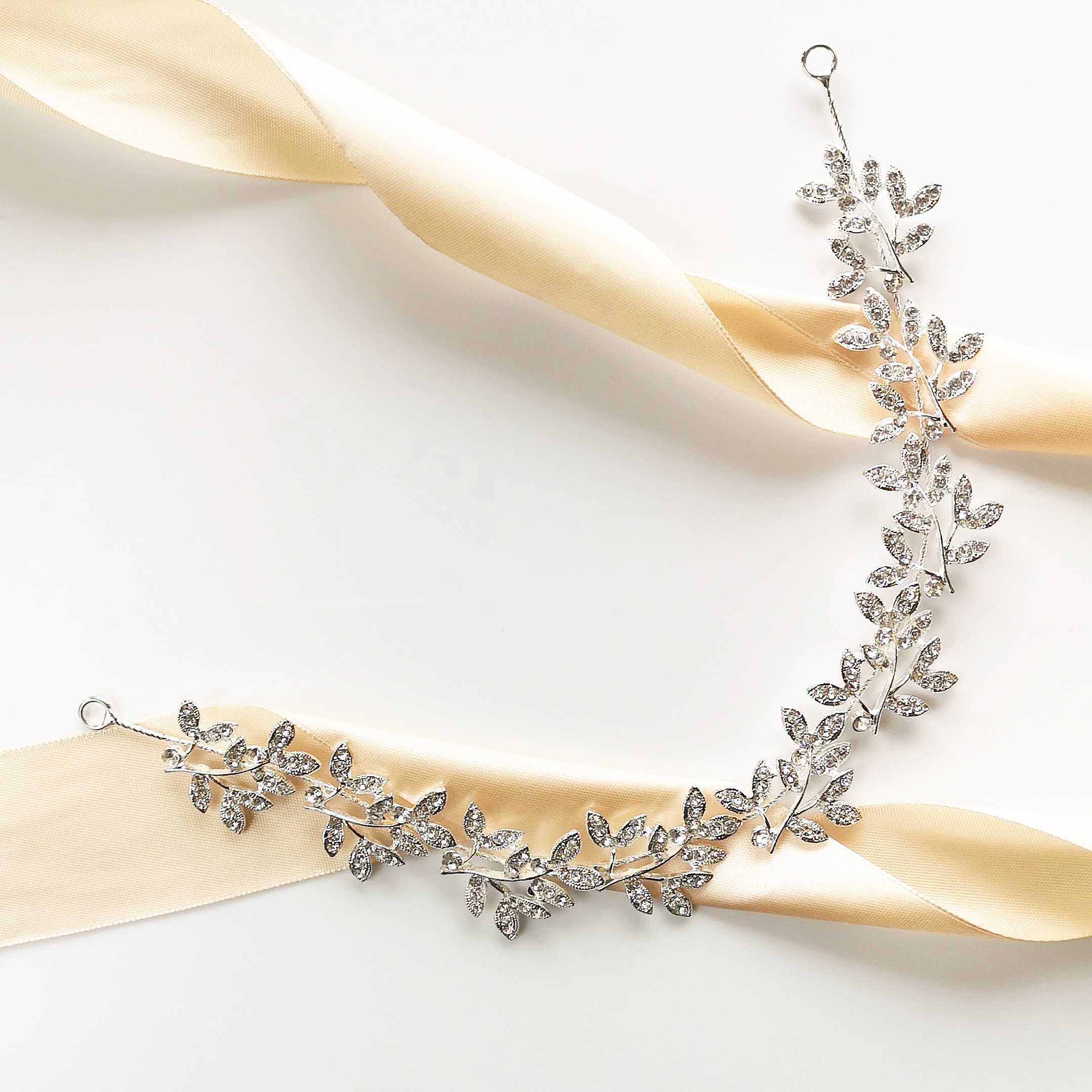 Opaska ślubna do włosów w formie gałązki dzięki elastycznemu drucikowi dopasuje się do każdej fryzury ślubnej pięknie ją ozdabiając - możesz założyć ją jako opaskę, a także opleść ją dookoła kucyka tworząc misterną ślubną kompozycję.