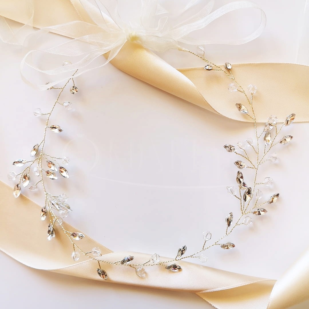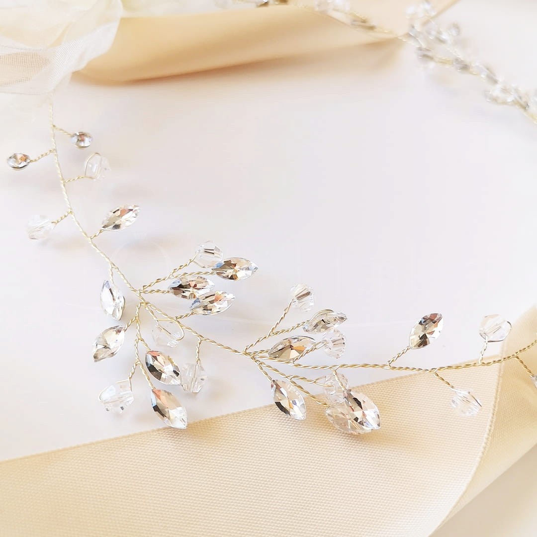 Biżuteryjny wianek z cyrkoniami i kryształkami przyozdobi stylizacje utrzymane w stylu glam. Gałązka pięknie się mieni, a dzięki giętkiemu drucikowi z którego została wykonana będziesz mogła nadać jej dowolną formę.