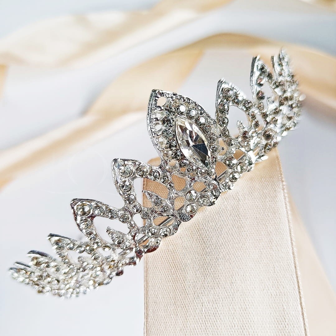 Szerokość maksymalna: 3,50 cm Na długości 20,00 cm tiara wysadzana jest cyrkoniami w eleganckim wzorze.