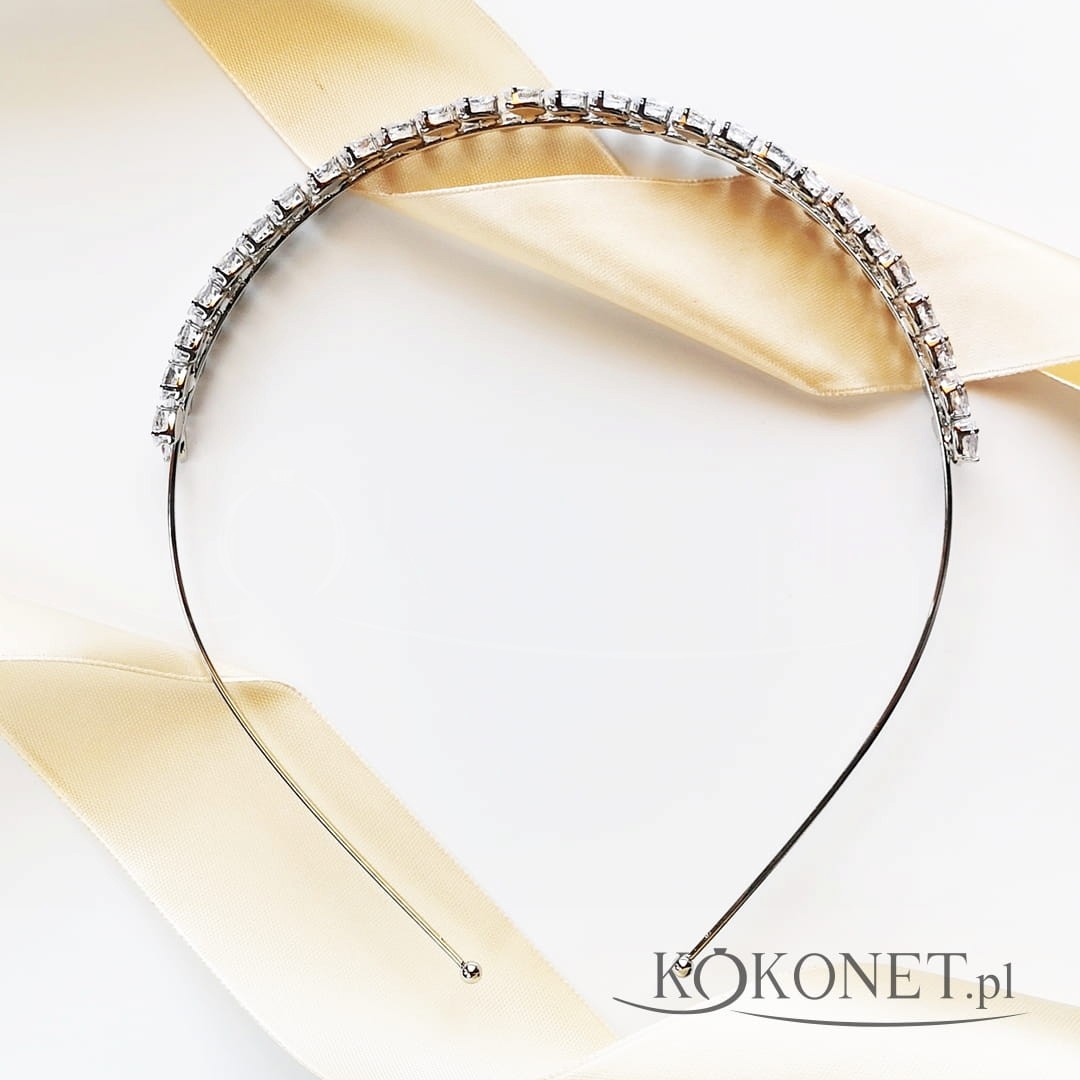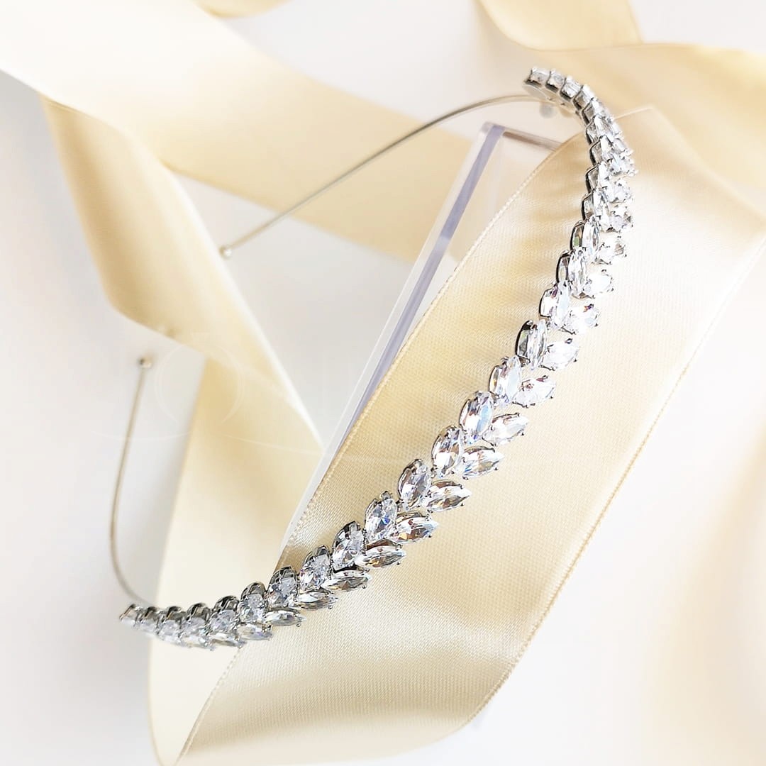 Ślubna opaska srebrna z cyrkoniami listki