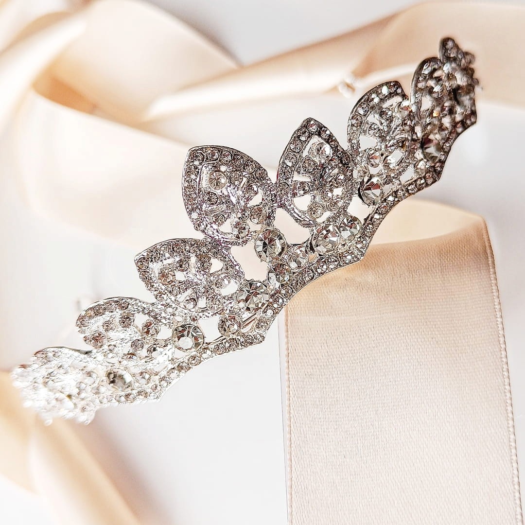 Jeśli zastanawiasz się jak dodatkowo wyróżnić się wśród swoich gości, to zerknij na tę srebrną tiarę, która pięknie połyskuje w wieczorowym świetle. Wysadzana dużą ilością cyrkonii podkreśli okazję na którą została założona.
